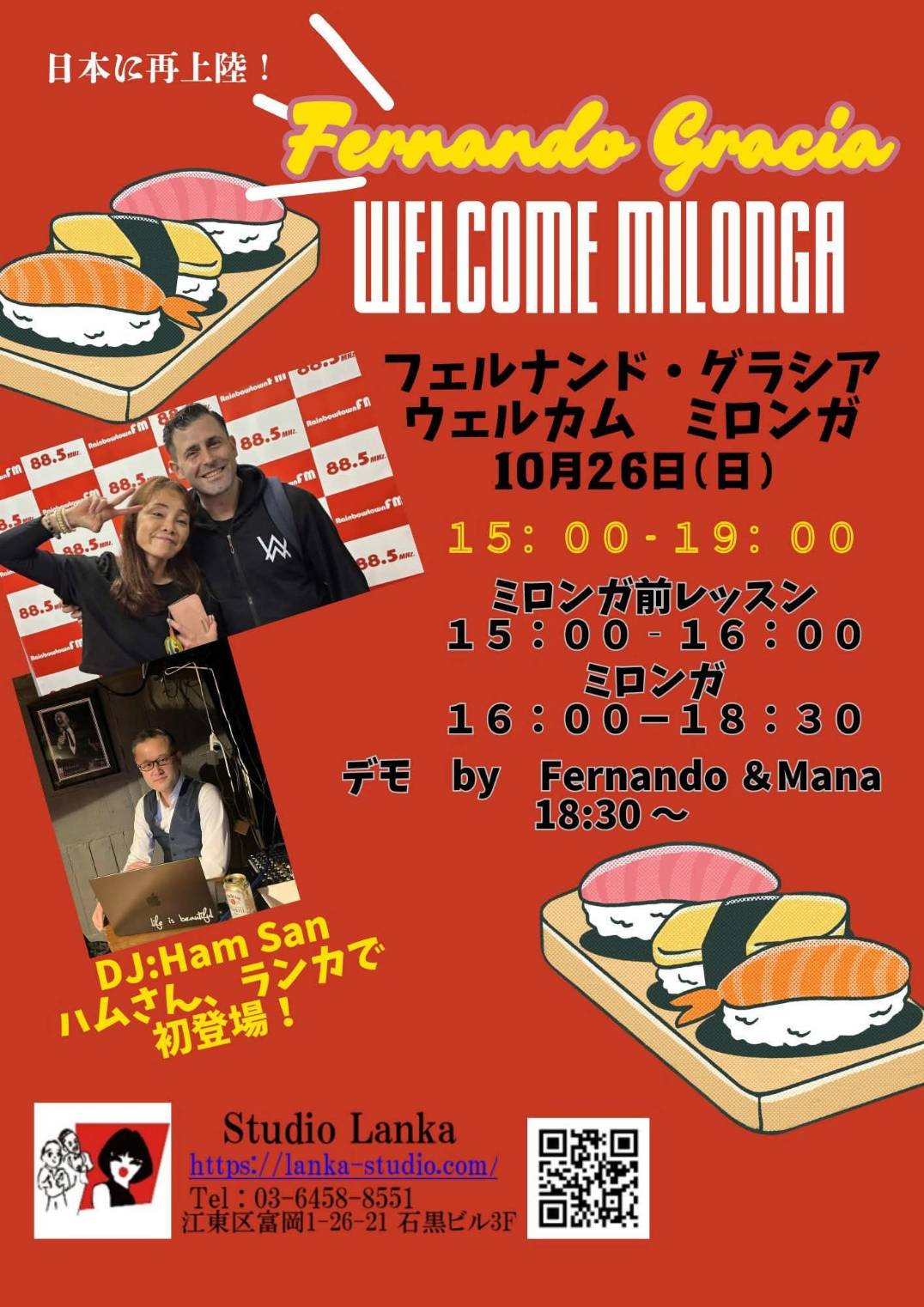 【イベント情報】10/26 フェルナンド ウェルカムミロンガ